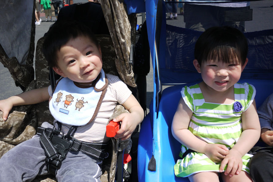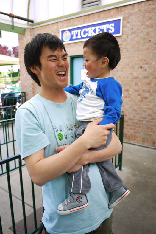 爸爸氹得兩隻仔好開心。。
