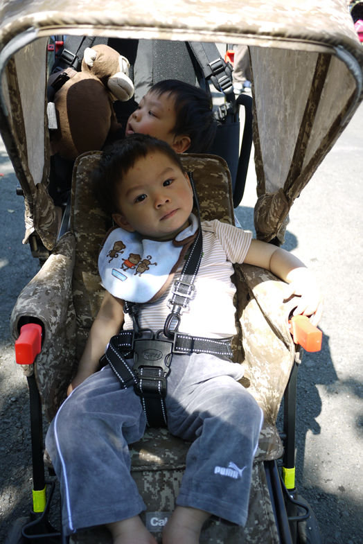 爸爸叻。改良左部孖車。哥哥都可以向前坐有得"挨"。唔使"銀"背背。。