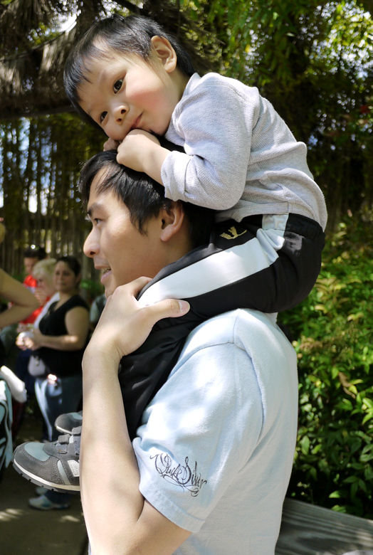 爸爸同呔仔睇大象show。不過睇左一陣。呔仔扭扭地。又走了。。