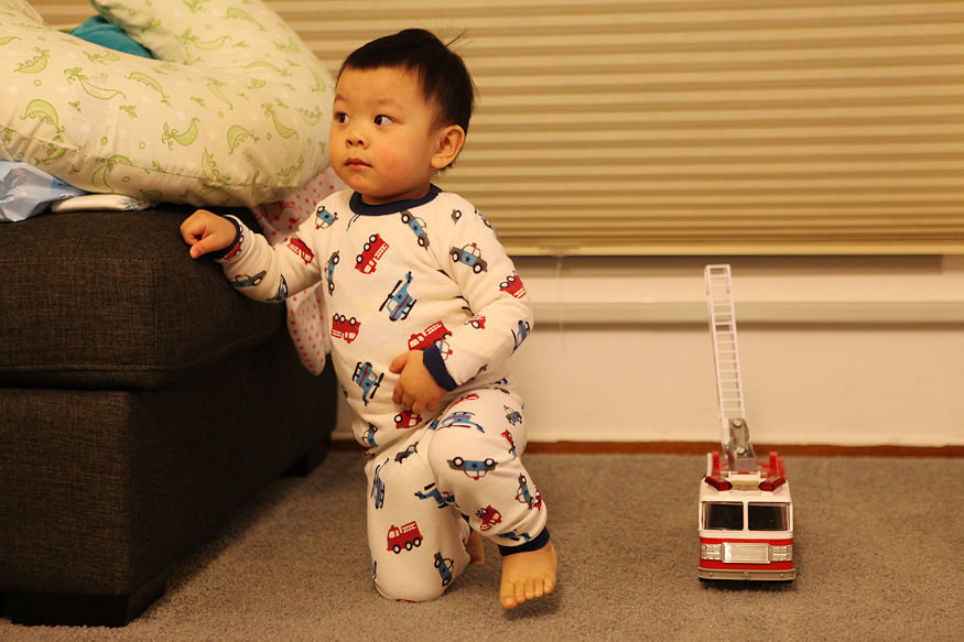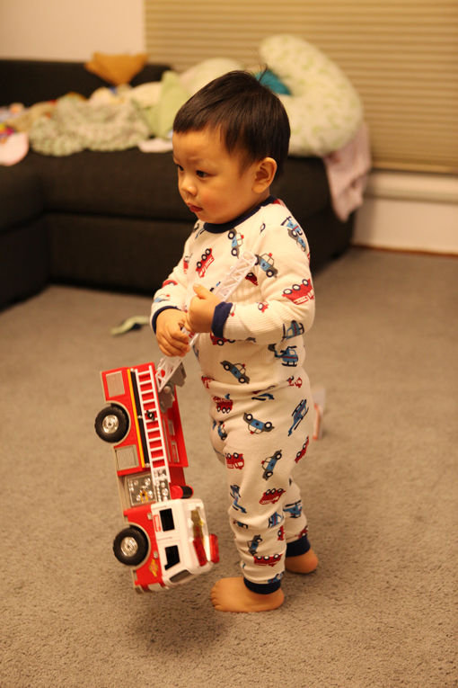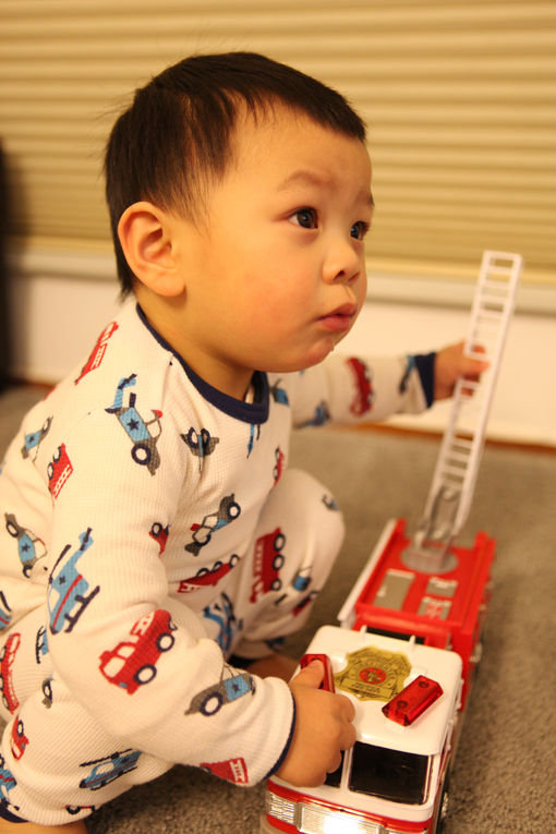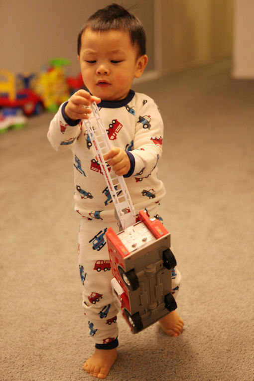 呔仔上晒癮。每日都要求睇"消防車"既短片。。